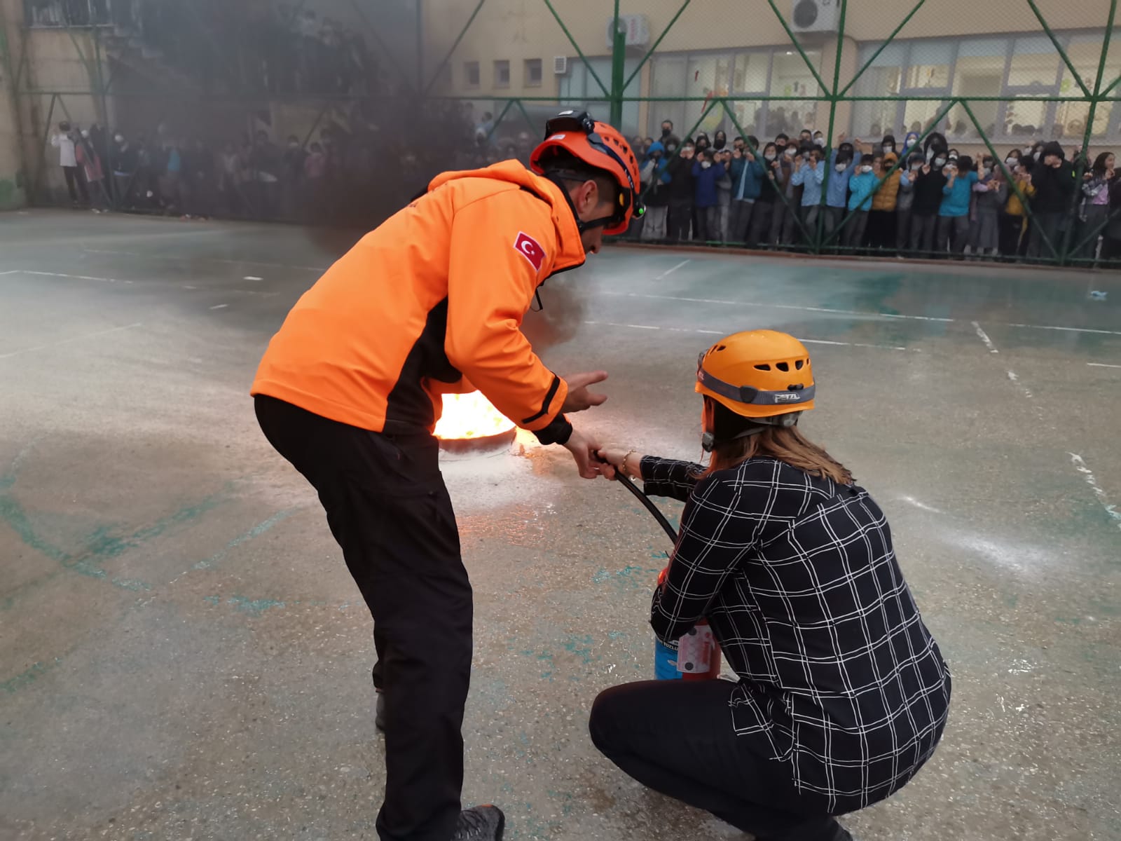 Yıldırım Belediyesi, olası bir afet öncesi ve sonrasında alınacak tedbirler, afet sırasında doğru davranış şekli ve sonrasında yapılması gerekenler hakkında okullarda bilgilendirme seminerleri düzenliyor. Yıldırım Belediyesi Arama kurtarma Ekipleri, Yıldırım Belediyesi, Yıldırım Kaymakamlığı ve İlçe Milli Eğitim Müdürlüğü’nün ortak protokolü kapsamında, ilçedeki mevcut 89 okulda öğrencilere ve personellere yönelik afet farkındalık eğitimlerine devam ediyor. Pandeminin ardından 2021-2022 Eğitim Öğretim yılıyla birlikte bilinçlendirme çalışmalarına tekrardan start veren ekipler gönüllü kadrosuyla yoğun mesaisi yapıyor. Bu kapsamda ekipler, Yıldırım Belediyesi Hacı Mehmet Zorlu Özel Eğitim Merkezi’ndeki 150 özel çocuğa temel afet bilinci eğitimi verirken, 30 personele de ilk yardım, yangın söndürme, kurtarma ve koruma uygulama eğitimi gerçekleştirdi.