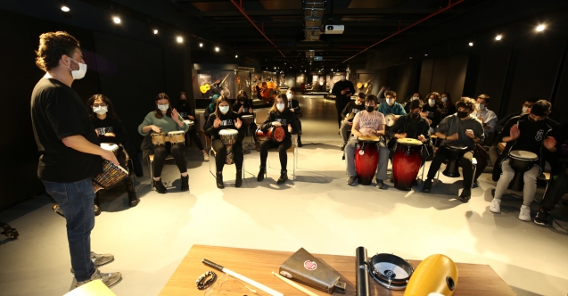 Ritim atölyesinin ilk konukları, Ahmet Erdem Anadolu Lisesi öğrencileri oldu. Önce müzeyi gezen öğrenciler, çoğunu ilk kez gördükleri enstrümanları ilgiyle inceledi.