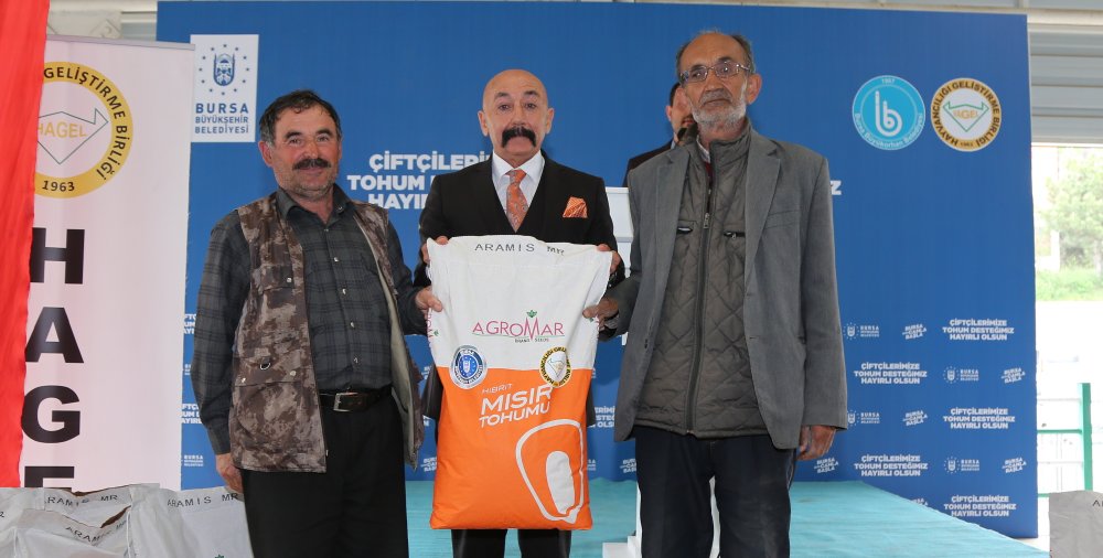 Bursa Büyükşehir Belediyesi, kırsal kalkınma hedefleri doğrultusunda Büyükorhan’da 120 üreticiye 720 dekar alanda ekilmek üzere silajlık mısır tohumu dağıttı.